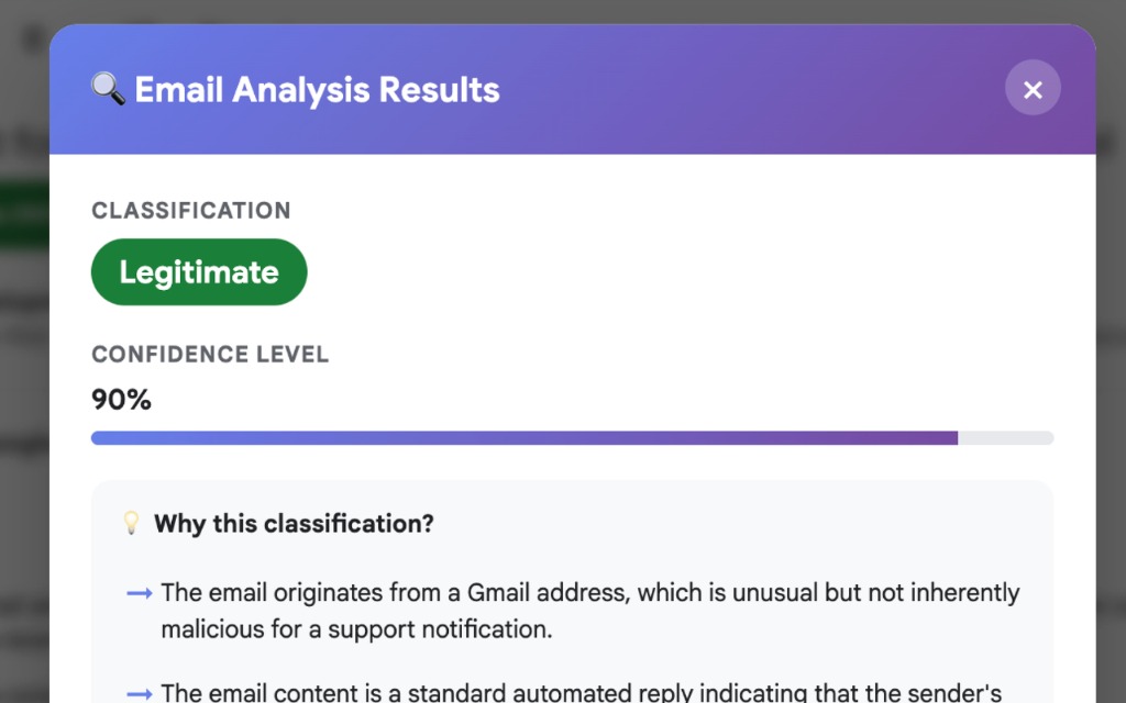 Seamlessly integrates with Webmail providers to automatically flag suspicious emails before you even open them.